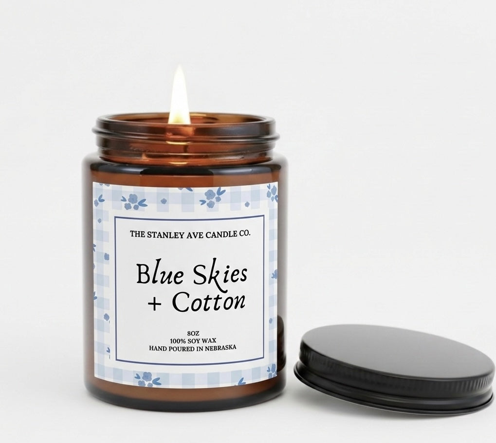 Blue Skies + Cotton is that just-washed, sun-dried-on-the-line kind of scent with a soft, feminine twist. Inspired by the classic Gingham vibe, it opens with airy freshness and light citrus, melts into delicate florals, and settles into a clean cotton finish that feels like blue skies on the perfect spring day.